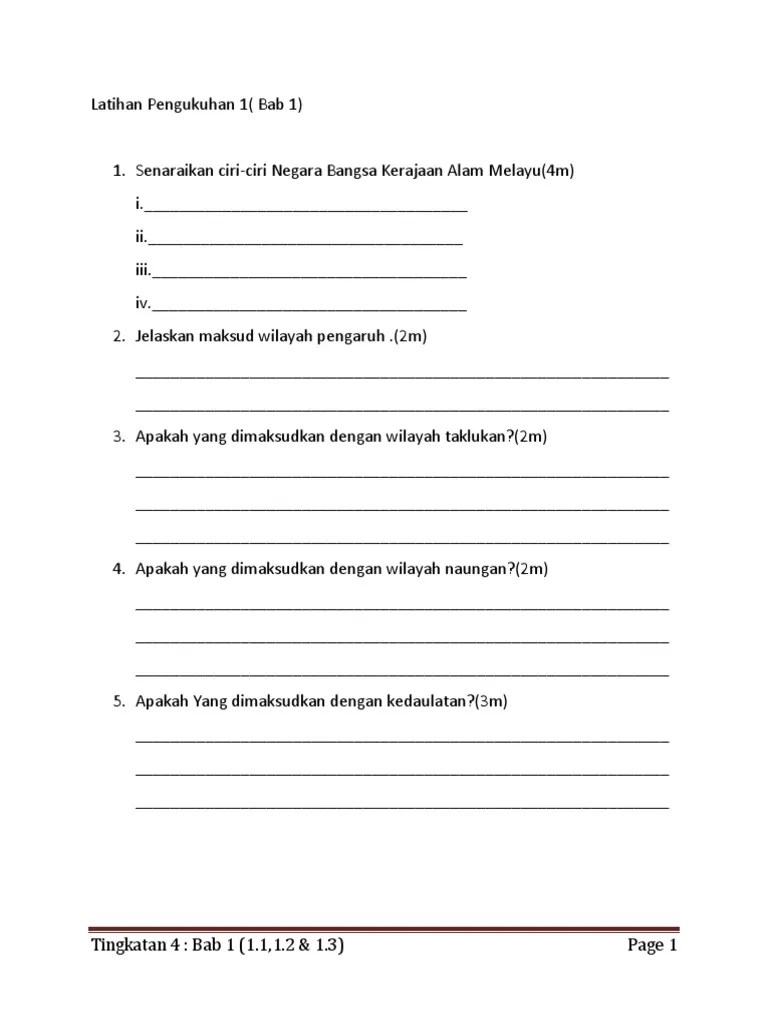 Ciri Ciri Negara Bangsa Kerajaan Alam Melayu Tingkatan 4 / Ejercicio De Sejarah Tingkatan 4 Topik 1 1